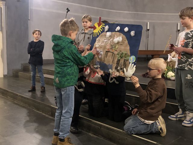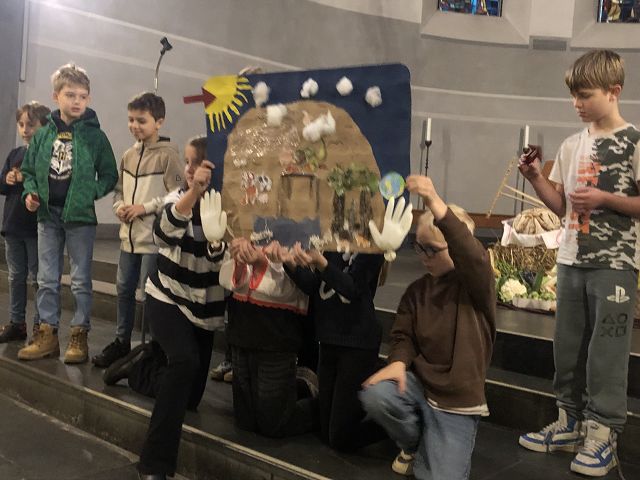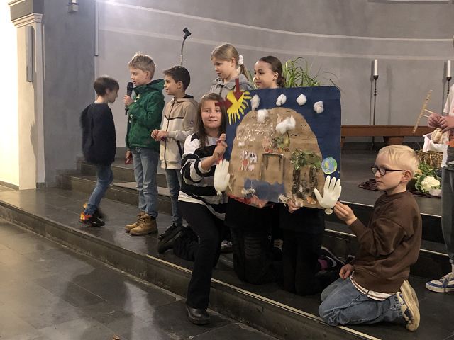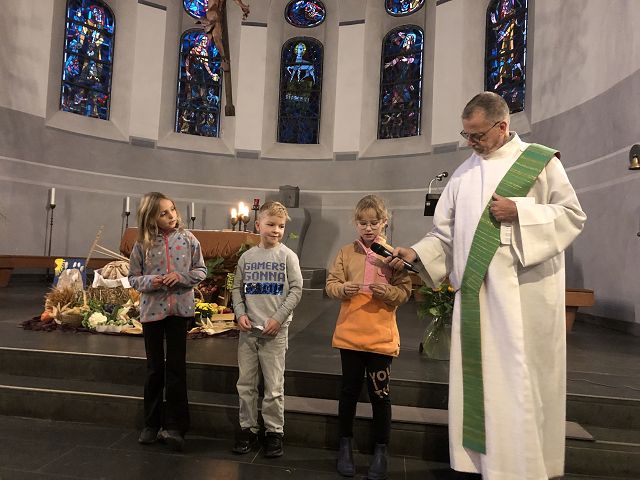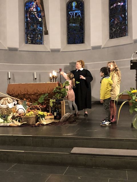 Am 9. Oktober fand unser Erntedankgottesdienst in der katholischen Kirche Heilig Kreuz statt. Innehalten, dankbar sein und an die denken, denen es nicht so gut geht waren die wichtigen Elemente an diesem Morgen. Alle Klassenstufen beteiligten sich an diesem Gottesdienst.