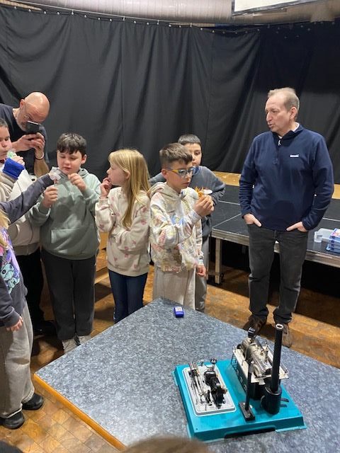 Sogar eine echte Dampfmaschine konnten wir im Einsatz sehen. Zusätzlich haben wir mit Licht kleine Solarautos angetrieben. Und wir konnten dort sogar ein bisschen am Kicker spielen. Es war ein rundum gelungener Ausflug.