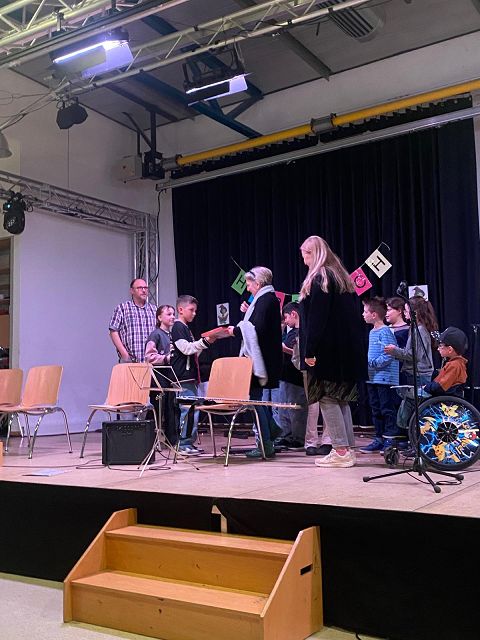 Am Ende bedankte sich Herr Hensch im Namen aller Lehrer und Mitarbeiter bei allen Kindern, den Musiklehrern und natürlich auch bei den Moderatoren Mathilda und Gianluca.