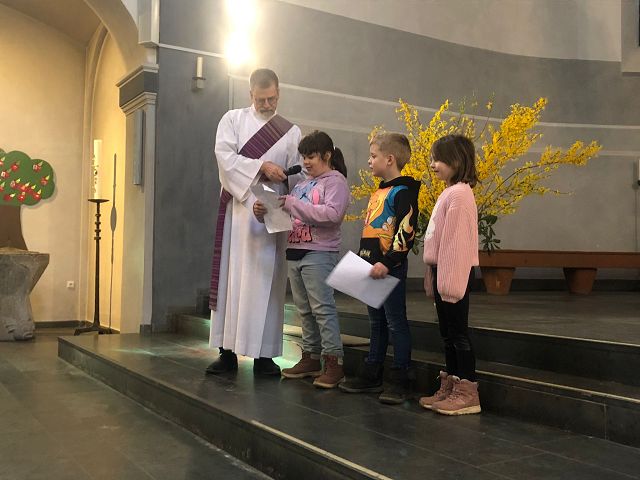 Wie jedes Jahr kurz vor Ostern versammelten sich die Eisernsteiner Löwen zu einem Gottesdienst. Am Donnerstag, den 26. März, um 8:30 Uhr in der Heilig Kreuz Kirche vermittelten die Kinder gemeinsam mit der Pfarrerin, dem Pfarrerin und der Religionslehrerin die Geschichte um den Tod Jesu und seiner Auferstehung. Gesangliche Einlagen und die Darstellung, dass aus einer kleinen, unscheinbaren Raupe ein wunderschöner, starker Schmetterling wird, zeigte den Kindern, dass auch der Tod die Tür zu etwas Neuem ist und die Hoffnung ein wichtiger Teil des Lebens ist.