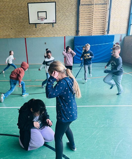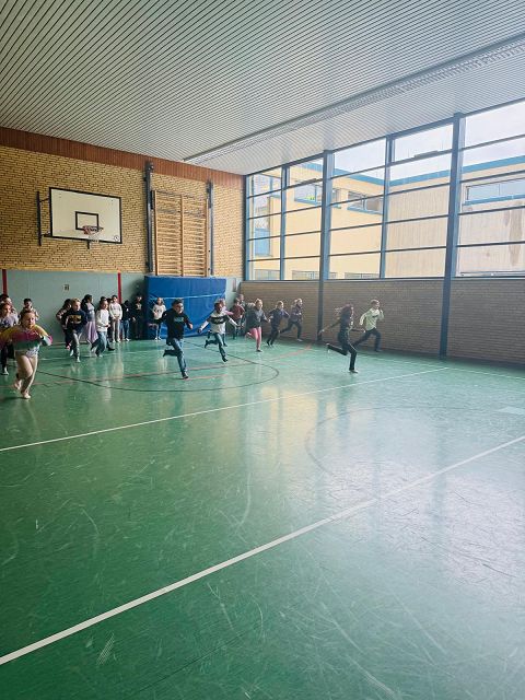 Die Bewegungspause findet jeden Donnerstag in der zweiten Pause mit Frau Hahn in der Sporthalle statt. Bis zu 30 Kinder aus allen Klassen treffen sich für Ball- und Bewegungsspiele, um sich auszupowern und den Kopf frei zu bekommen. Auch wenn Spaß und Bewegung im Vordergrund stehen, werden hier spielerisch unter anderem Balance, Auge-Hand-Koordination, das räumliche Vorstellungsvermögen und Problemlösungsfähigkeiten gefördert.